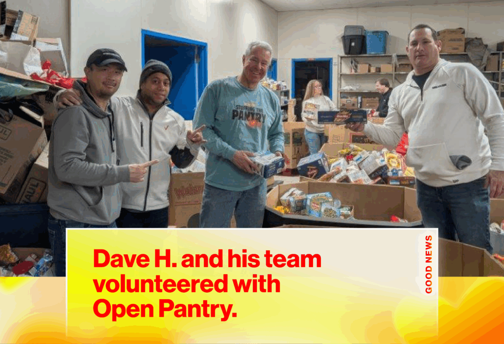 Dave H. and his team volunteered at an emergency food pantry, Open Pantry. Located in Springfield, MA, Open Pantry serves not only its local community but will hand out food to anyone in need. The team spent over two hours organizing food that was handed out that night. Springfield has the highest poverty rate in the state and has the highest number of people on SNAP benefits.